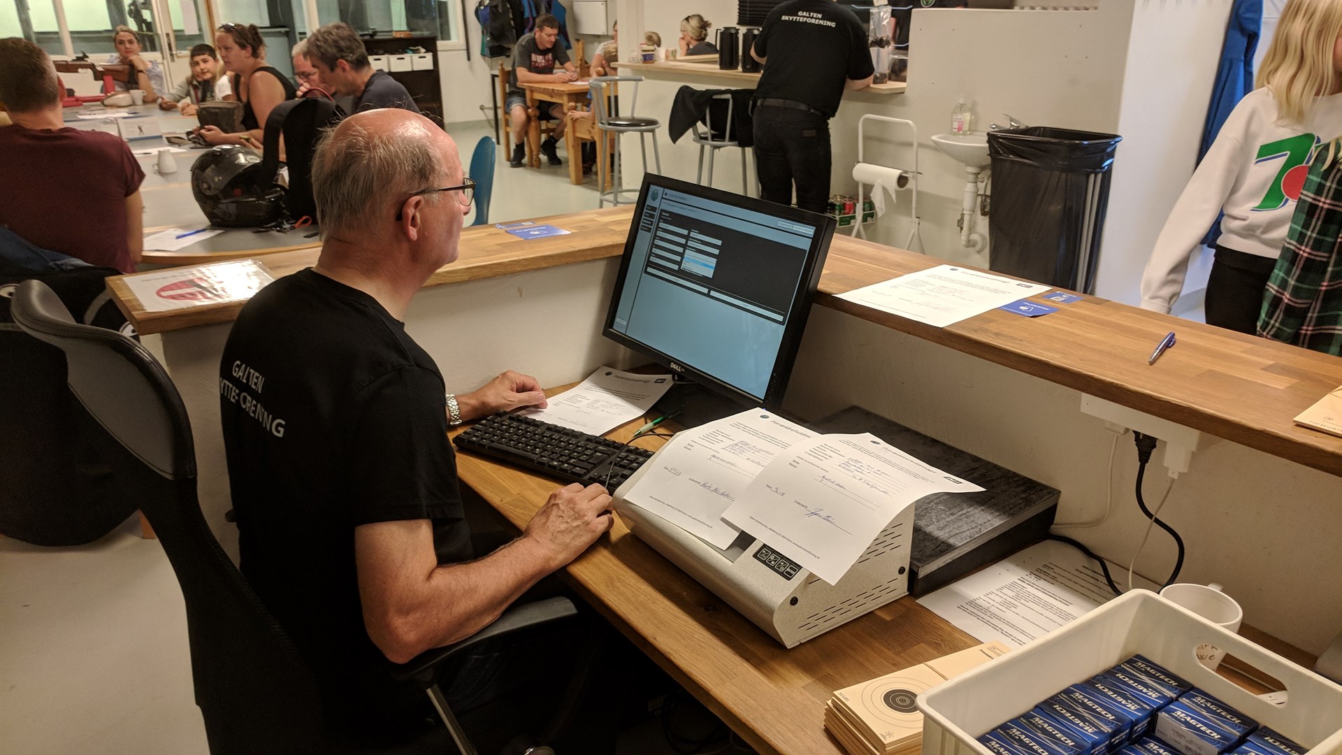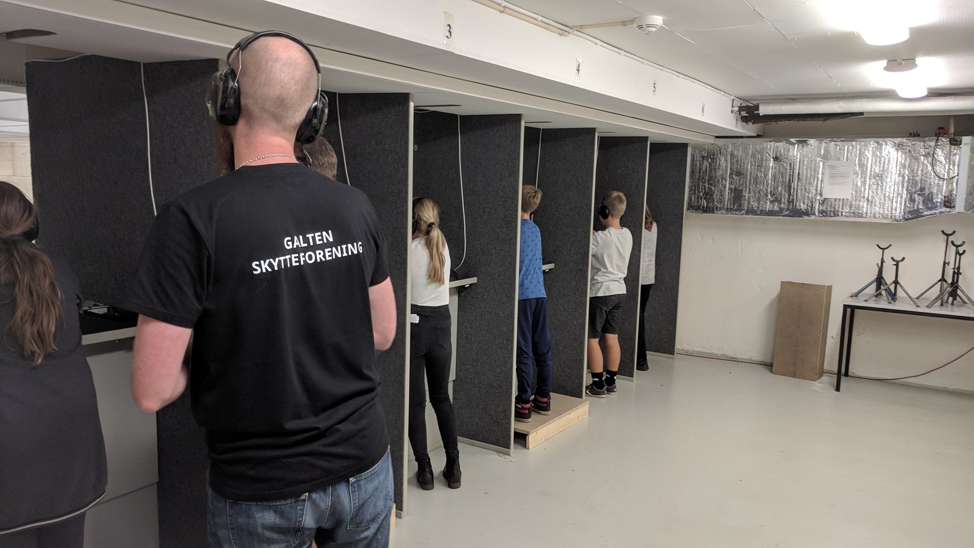 Elever fra 5. klassetrin og deres forældre fra Gyvelhøjskolen og Herskindskolen var mødt op til infoaften om Skole DM i skydning samt prøveskydning for eleverne.